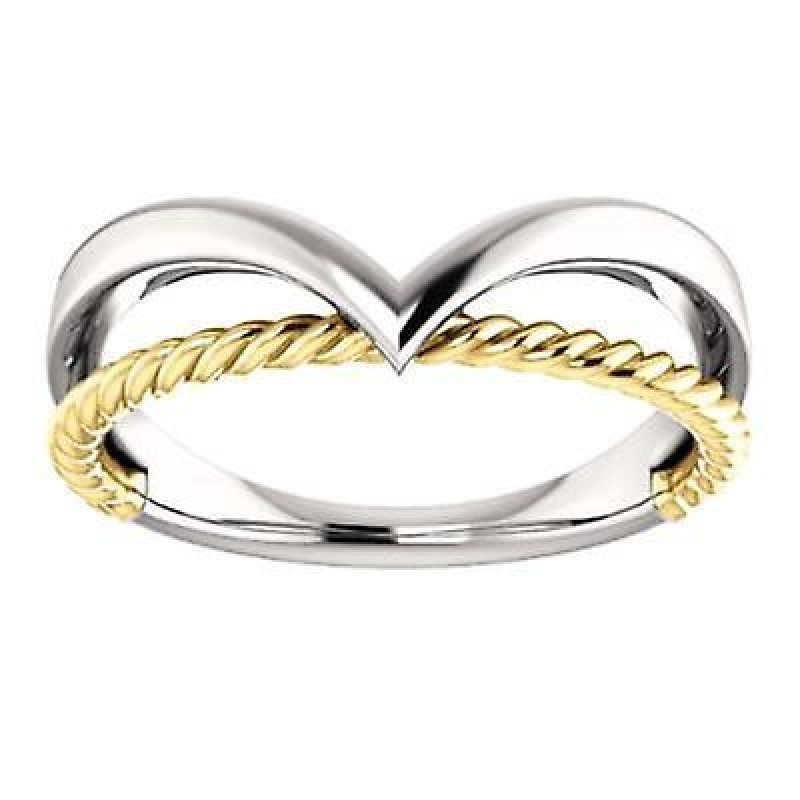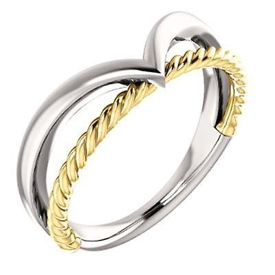 Anello con corda a spazio negativo in oro bianco e giallo 14k lucido - Misura 6,5 - 3,5 grammi in oro giallo 14k - Confezione regalo inclusa.